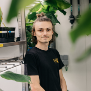 I am interested in CROPPS because of its mission to develop groundbreaking tools to listen and talk to plants. Plants are wired with internal long-distance communication systems that enable roots and shoots to adapt growth to fluctuating environments; long-distance signals are signaling molecules (peptides in my project) that translocate from one organ system/tissue to another within plants. The C-terminally encoded peptide (CEP) signaling relay is one such system. Under limited Nitrogen conditions, plants produce CEP peptides in their roots that travel up into the shoot where they bind to two CEP receptors (CEPRs). These receptors turn on the production of shoot-derived polypeptides–CEP Downstream 1/2 (CEPD1/2)–that descend back down into the roots and increase Nitrogen uptake. I plan to engineer a novel synthetic system in tomato that is constructed around the core components involved in CEP nitrogen signaling. My project’s aim is to create biotic drought-sensor plants that produce a fluorescent signal in response to water replete environments. CROPPS opens a stage for collaboration that I hope will allow me to lessen the gap between applied plant biology/agricultural studies and digital studies.
